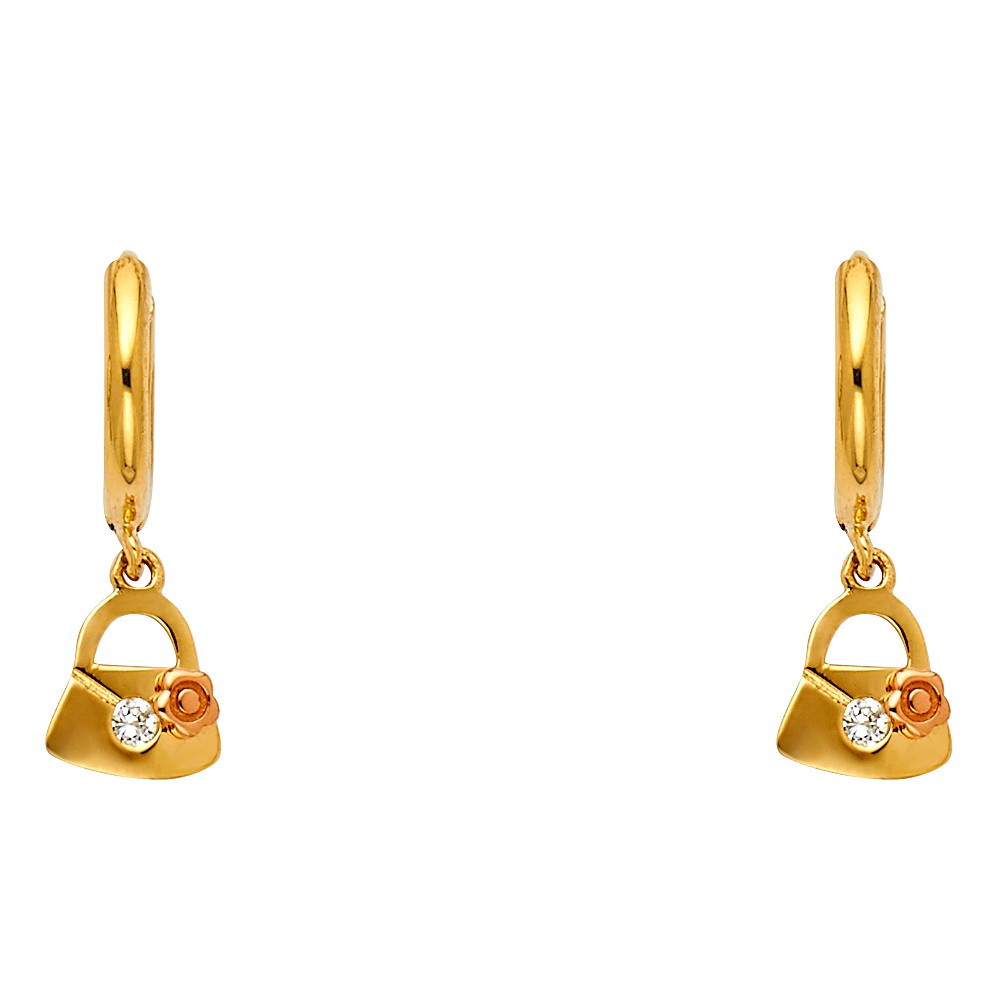 14KY CZ Hanging Huggies Earrings