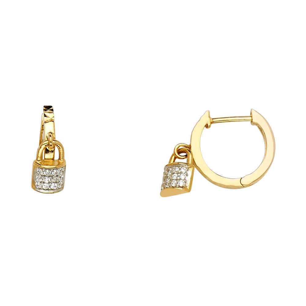 14KY 3mm Lock CZ Huggies Earrings