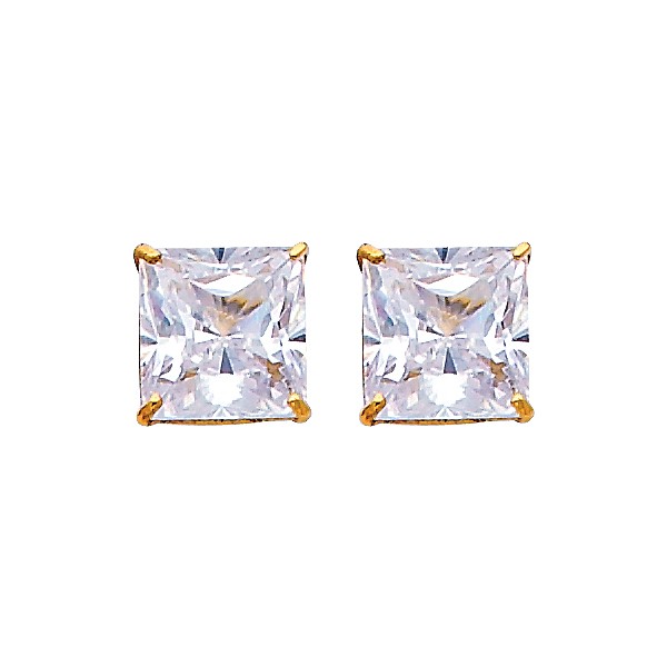 14k Yellow 7mm Princess Basket CZ Stud Earrings – Silcone Push Back