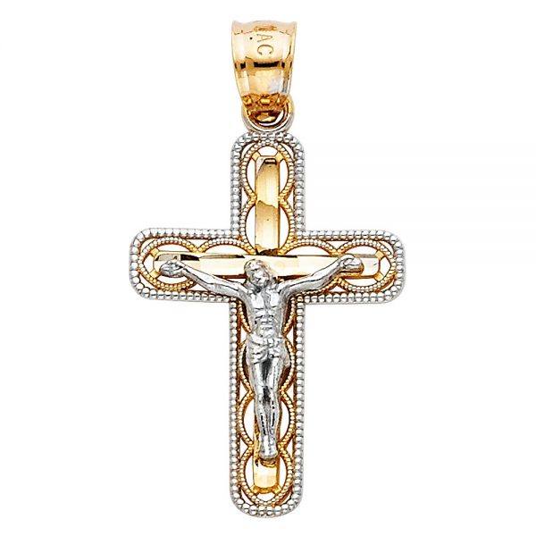 14K 2T Jesus Crucifix Cross Religious Pendant