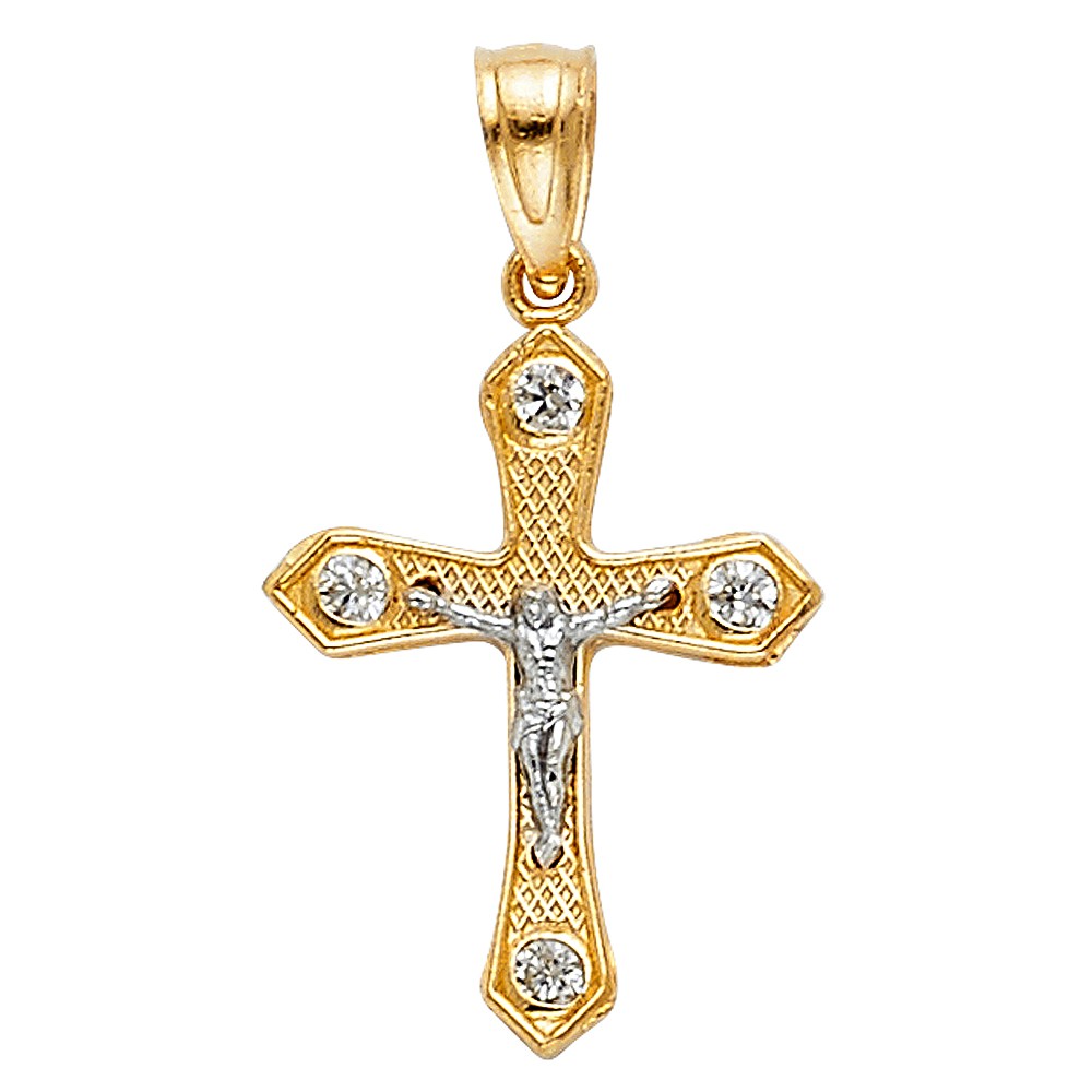 14K 2T Jesus Crucifix Cross Religious Pendant
